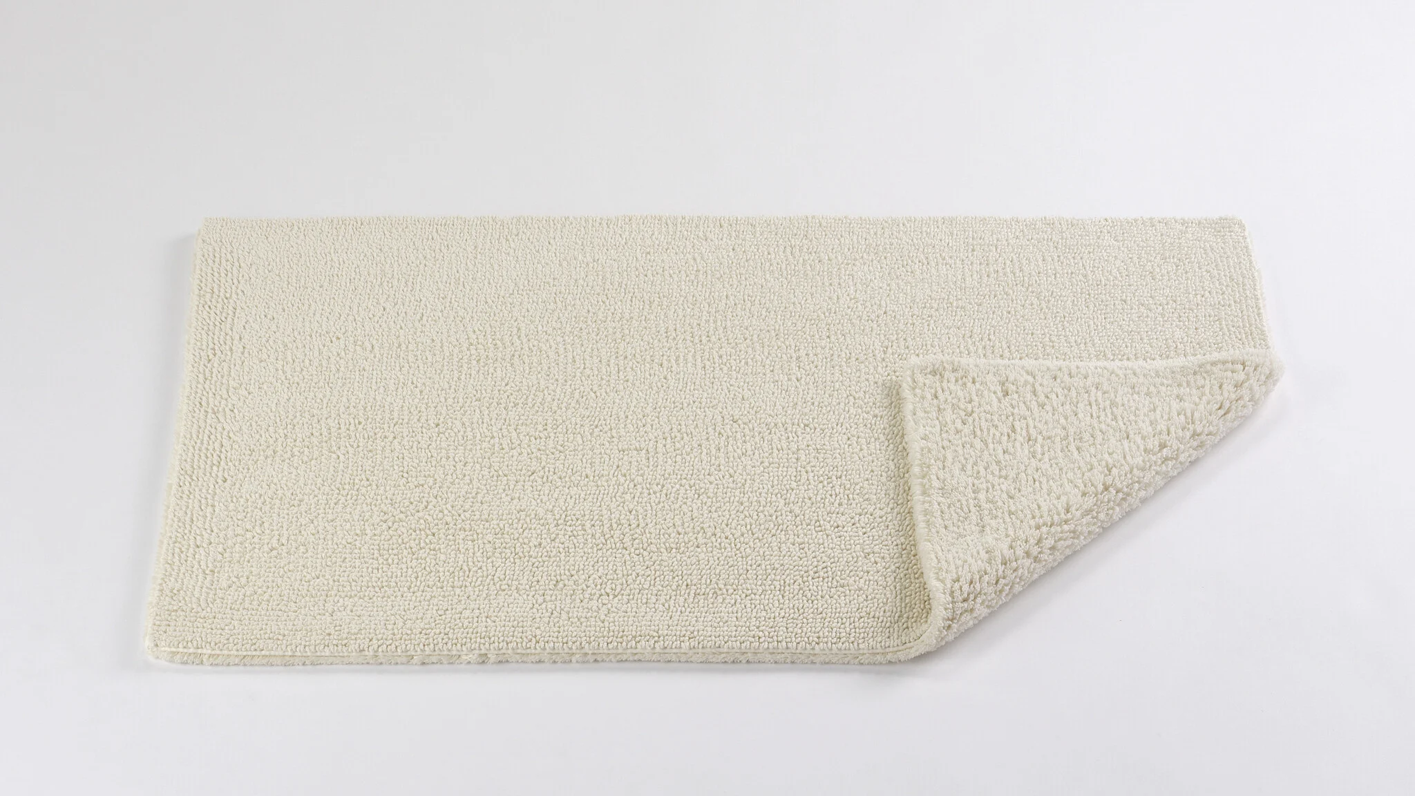Abyss & Habidecor Cordeira-badmat – modern design met organische vormen in zachte neutrale tinten. Gemaakt van Egyptisch Giza-katoen (2200 g/m²) voor ultiem comfort en luxe. Verkrijgbaar bij Marie-Julliette.