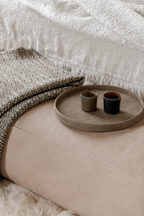 De strakke vormgeving en subtiele textuur maken van deze tray een veelzijdig designobject: perfect als stijlvol accent op een Evolution21-poef, bijzettafel of dressoir. De zachte lederlook brengt warmte en karakter in elk interieur.